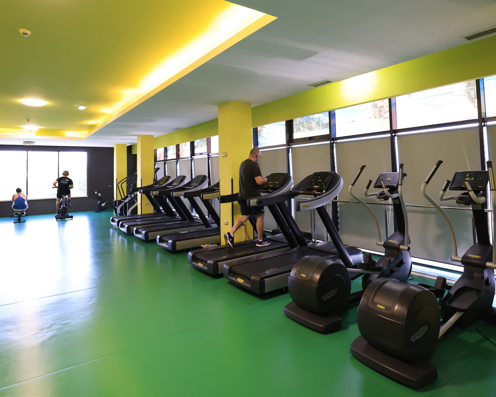 Sala este dotată complet: aparate de forță (Smith Machine, presa de picioare, Hip Thrust, Ab Crunch, cabluri, Lat Pulldown), echipamente cardio (bandă, bicicletă, eliptică, scări), plus o zonă specială cu gantere, TRX, battle ropes și echipamente funcționale.